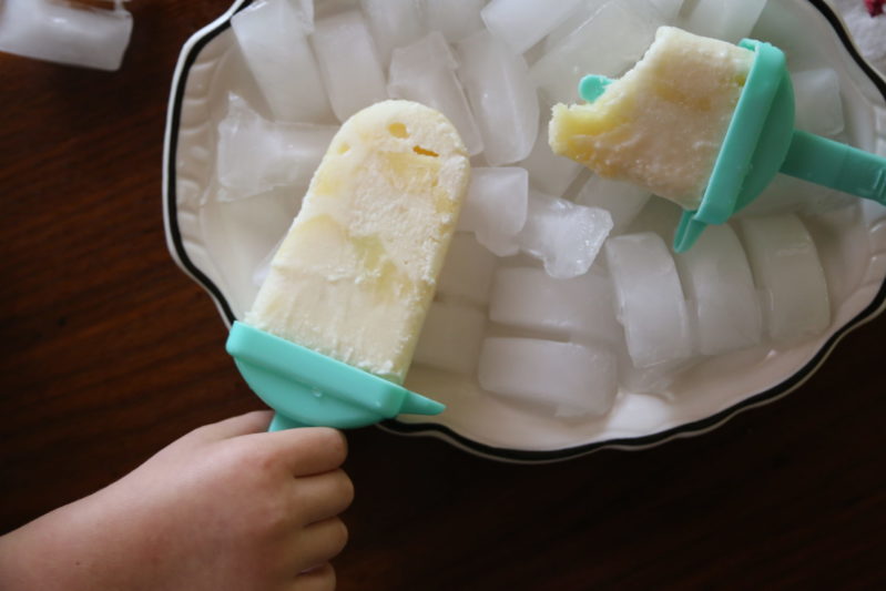 - Mix well, and pour into greased popsicle molds (or use small paper cups with popsicle sticks)