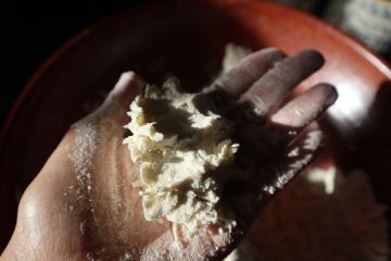 - Add the cold butter and cold tallow. Cut in or pulse until the mixture looks like coarse crumbs with pea-sized pieces.