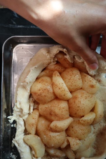 - Roll out on a floured surface OR press into the pie plate using your fingers, about 1/8 thickness.