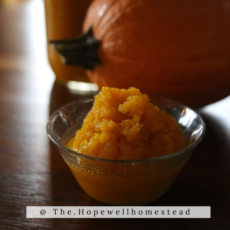 - Cut pie pumpkin in half and scrape out insides and seeds.
